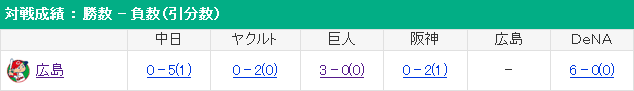 広島 0 1 0 0 0 0 0 0 0 0 // 1